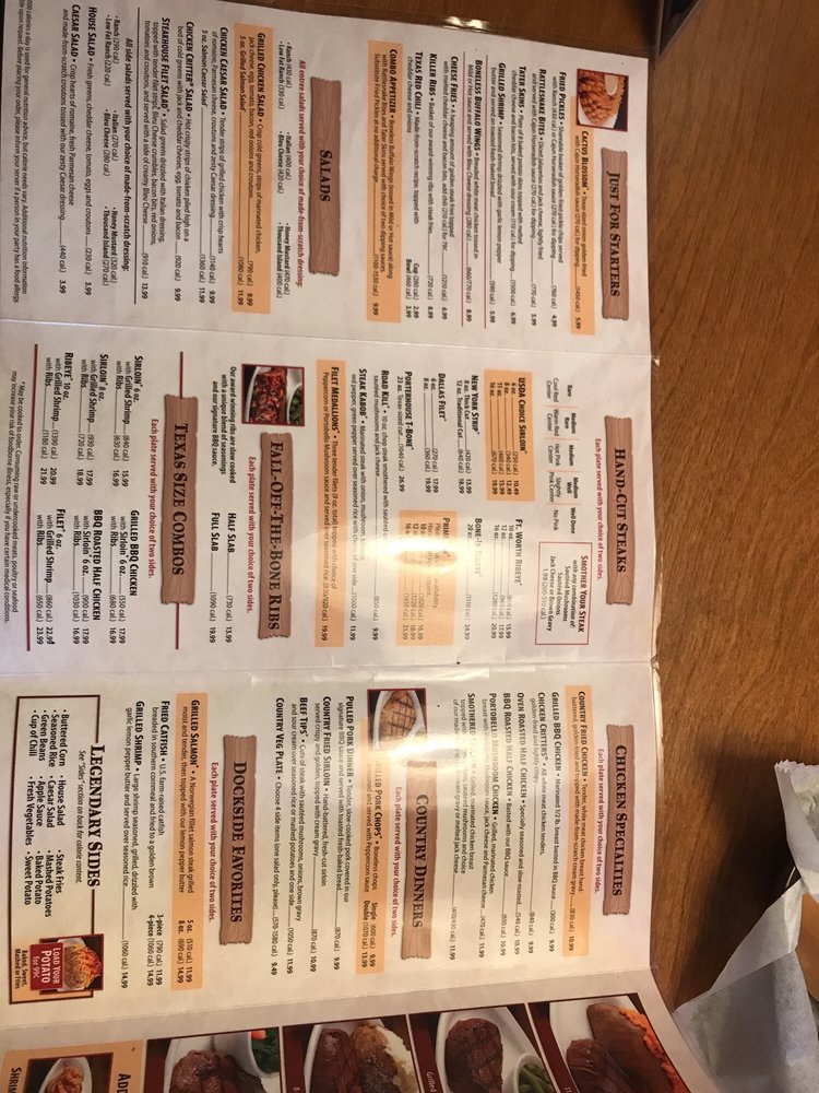 Start your experience with their famous Cactus Blossom, a Texassized, golden-fried onion served with zesty Cajun sauce. From Rattlesnake Bites to Fried Pickles, every appetizer tempts your taste buds. The main courses shine with delightful combos such as Grilled BBQ Chicken & Ribs and the tender Grilled Salmon.